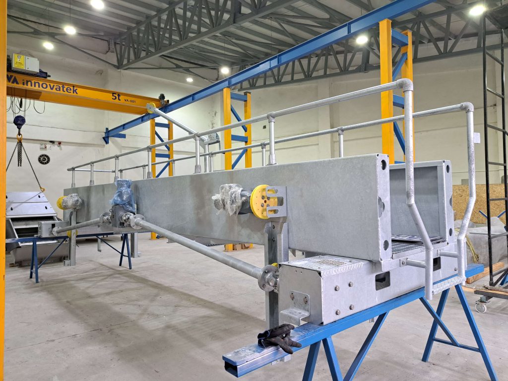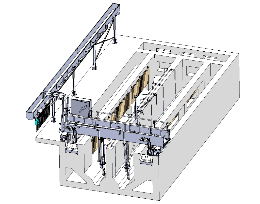 SND+Sand-Fetträumer besteht aus einer Wanderbrücke, die die Sand- und Fettentfernungssysteme trägt. Die Brücke überspannt einen oder mehrere nebeneinander aufgebaute Längstanks. Abgesetzter Sand wird entweder durch eine Räumerklinge oder direkt durch ein Saugsystem entfernt, das das Sediment vom Tankboden direkt in eine seitlich installierte Auffangrinne befördert. Mithilfe des Oberflächenabstreifers wird das Fett ebenfalls zum Ende der Kammer transportiert und in einen Auffangtrichter ausgetragen